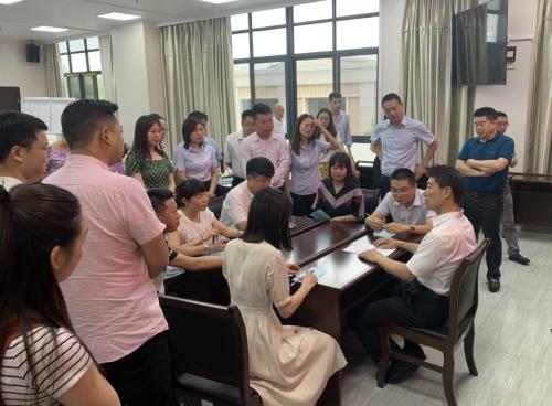 商战沙盘模拟是一种让企业核心管理人员迅速理解商业、培养商业敏感度、学习财务基础的角色体验项目。本次活动以企业经营模拟竞赛为主,授课老师将参训学员分成6个团队,分别组建公司,开展市场预测、产品生产、销售等一系列市场化运作,将企业生产、研发、人力资源管理、市场营销、竞争全方位呈现在“沙盘”之中,通过模拟真实的商业环境,参训高管在极短时间内亲身体验了企业管理运作的完整流程,各类商业、管理、财务、销售等基础知识体系得到极大完善,业务能力迅速提高。