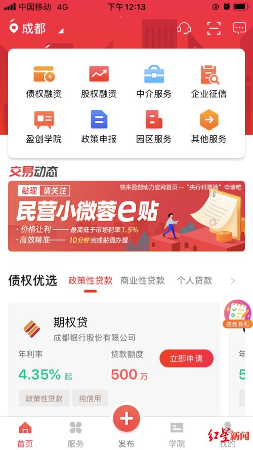 2月11日,红星新闻记者获悉,在当前疫情防控关键时期,成都高新区不断提升盈创动力科技金融服务平台各项在线业务申报和审批能力,迅速开辟政策性信贷产品线上绿色申报通道,在线为企业提供“成长贷”“园保贷”“壮大贷”“新创贷”等多款政策性产品服务。